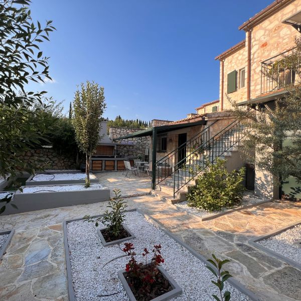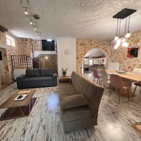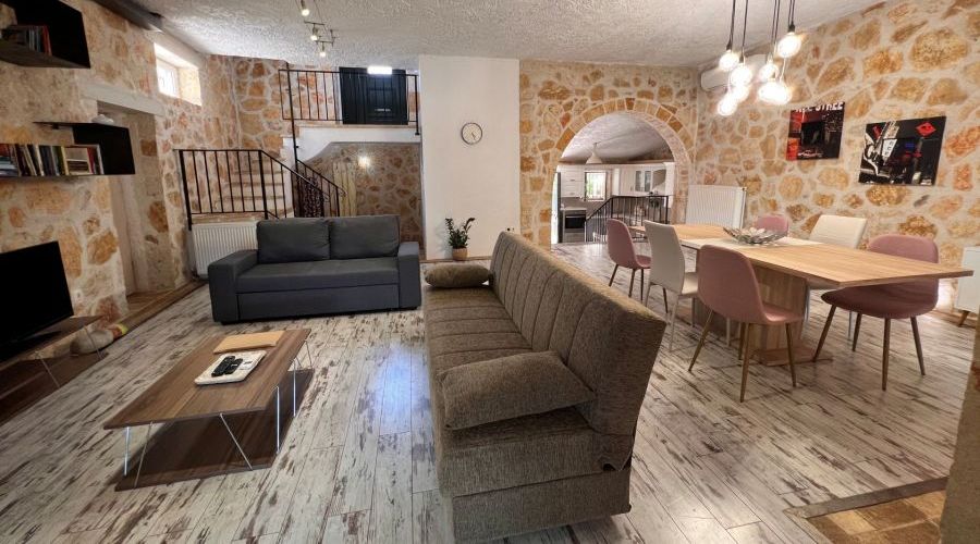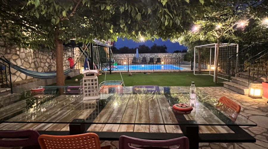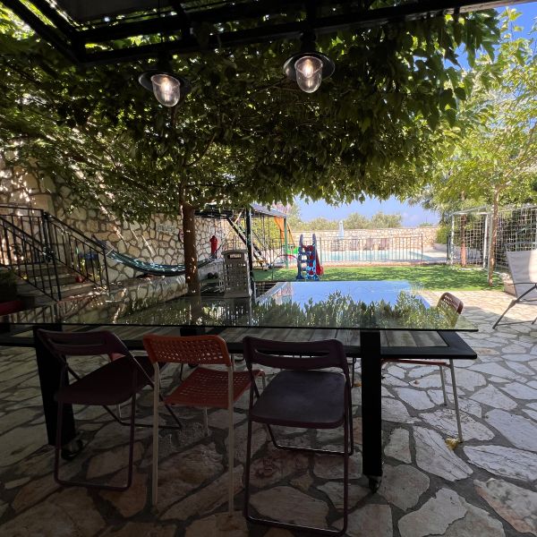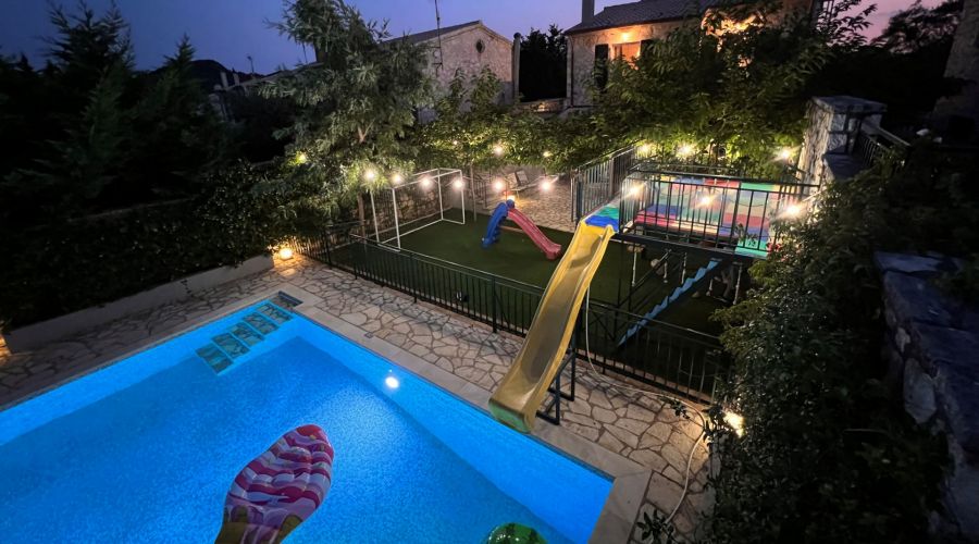 It is a three-bedroom luxurious, cosy stone villa in two levels, that offers a child safe – private large swimming pool with a waterslide, a kids’ playground and a mini gym-room. Furthermore, it offers front and back gardens with barbecue facilities, as well as a terrace and a parking space.